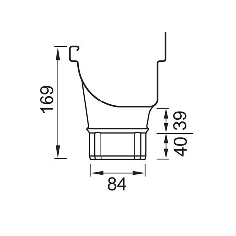 z rynny do rury spustowej. Montowany jest na rynnie z wykonanym pionowo otworem. Szeroka podstawa sztucera oraz duża ilość wypustków gwarantują stabilną jego pozycję na rynnie, a specjalnie zaprojektowany kształt dolnej jego części pozwala na połączenie