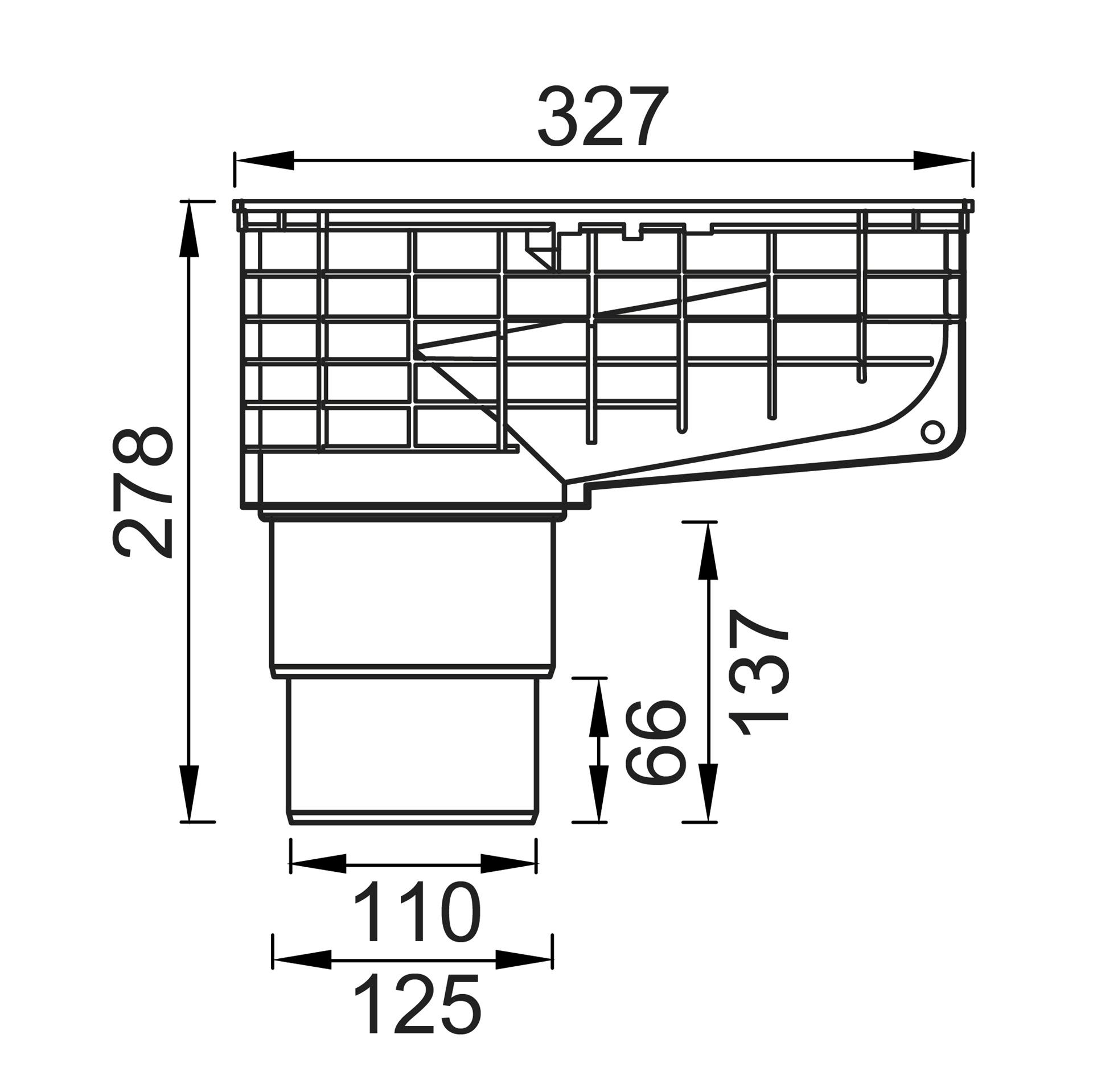 Przelew kanalizacyjny do rury kwadratowej